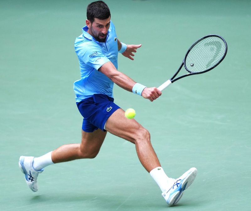 德约科维奇在比赛中回球 新华社记者 吴晓凌 摄